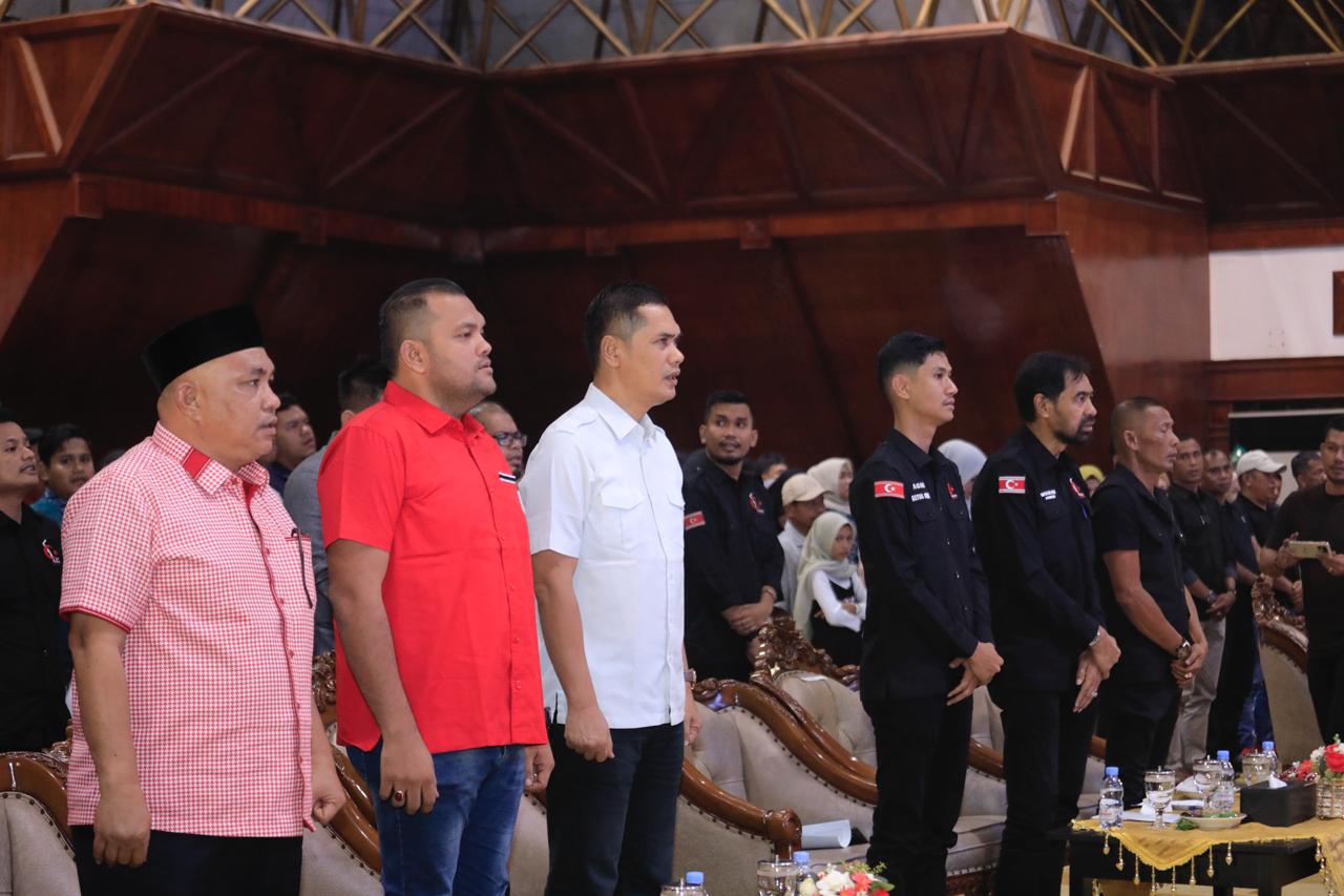 Prosesi pelantikan ditandai dengan penyerahan bendera pataka organisasi secara langsung oleh Gubernur kepada Ketua Umum DPP Muda Seudang terpilih, Agam Nur Muhajir.